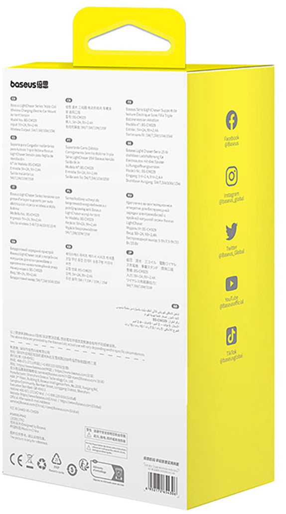 Baseus LightChaser Wireless Car Charger - Black (Resealed) Baseus LightChaser elevates wireless charging to a new standard with its integrated 15W fast charging system. The latest generation wireless charging technology eliminates the need for cables, providing a clean and modern experience. Thanks to the triple coil, the charging surface is extended, allowing faster and more accurate device detection for stable and efficient charging. Advanced safety in any situation The holder is equipped with intelligent protection functions against overheating, overcharging, and short-circuiting. These safety measures protect both the user and the smartphone, preventing damage and ensuring stable operation. Additionally, the heat dissipation system prevents the charger from overheating during use. Extended compatibility and usage flexibility Compatible with most smartphones, including foldable models, Baseus LightChaser allows the device to be positioned both vertically and horizontally. This way, you can easily access navigation or music apps while driving, without compromising the visibility or stability of the device. Refined design and robust construction With a panel made of transparent glass and an elegant black finish, the holder offers a modern and professional look. The automatic locking mechanism ensures the phone's stability even on rough roads or during sudden braking. Unlocking is simple, by pressing a button, and the built-in supercapacitor allows the locking mechanism to function even when the car is turned off (up to 5 activations). Enhanced comfort and functionality The integrated spherical joint allows the holder to be adjusted 360 degrees, providing the perfect viewing angle. The anti-slip silicone padding protects the device against scratches and slipping. The holder also includes a special opening for connecting the cable, in case wired charging is necessary. Features: - Input: 5V/2A, 9V/2.4A - Output power: 5W / 7.5W / 10W / 15W - Total output power: 15W - Material: ABS + PC - Dimensions: 7.4 x 13.9 x 13.3 cm Package contents: - Wireless Car Charger - Ventilation Grill Mount