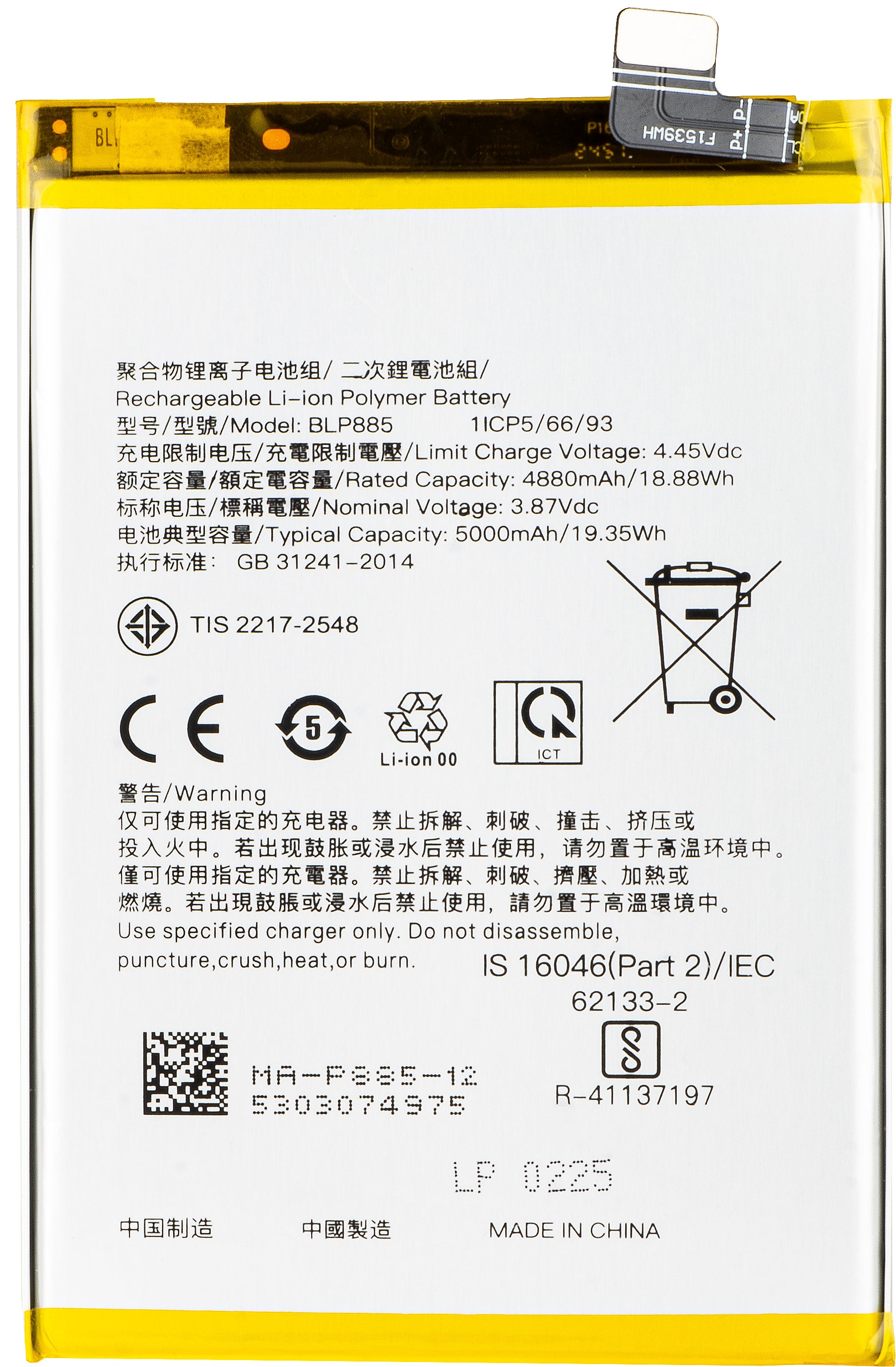 BLP885 Battery for Oppo K10 / A96 / A76