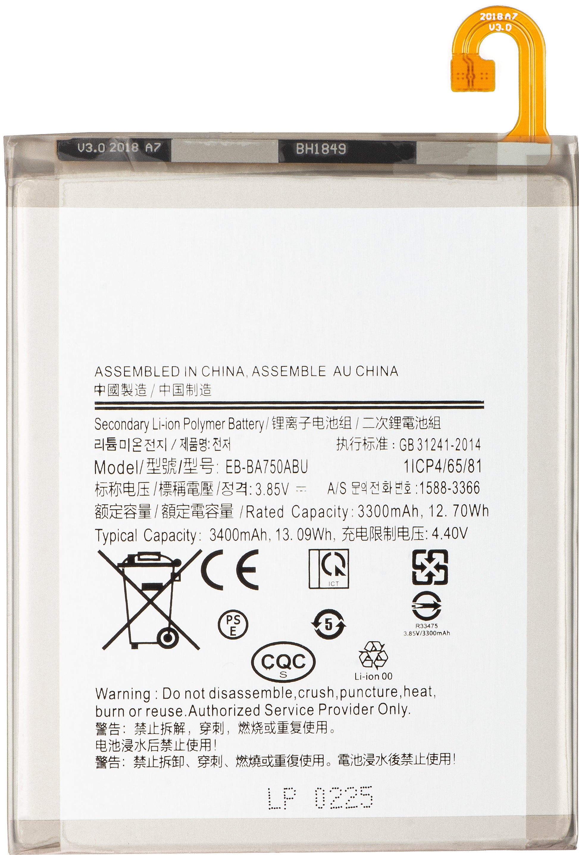 Battery for Samsung Galaxy A10 A105 / M10 M105 / A7 (2018) A750, EB-BA750ABU