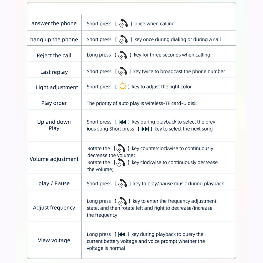 • Frequency: 87.5 - 108MHz;