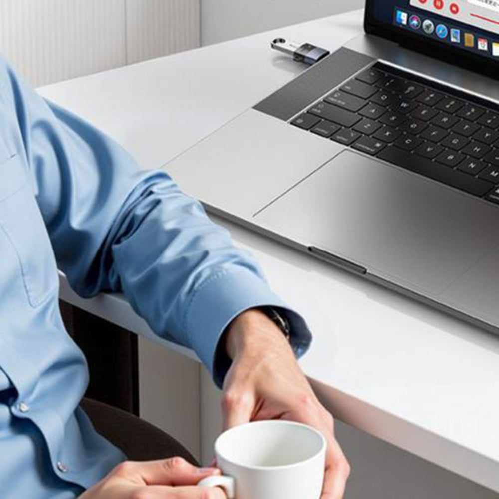 Compact adapter with simultaneous transfer and power function, made from durable materials and optimized for stability in daily use.