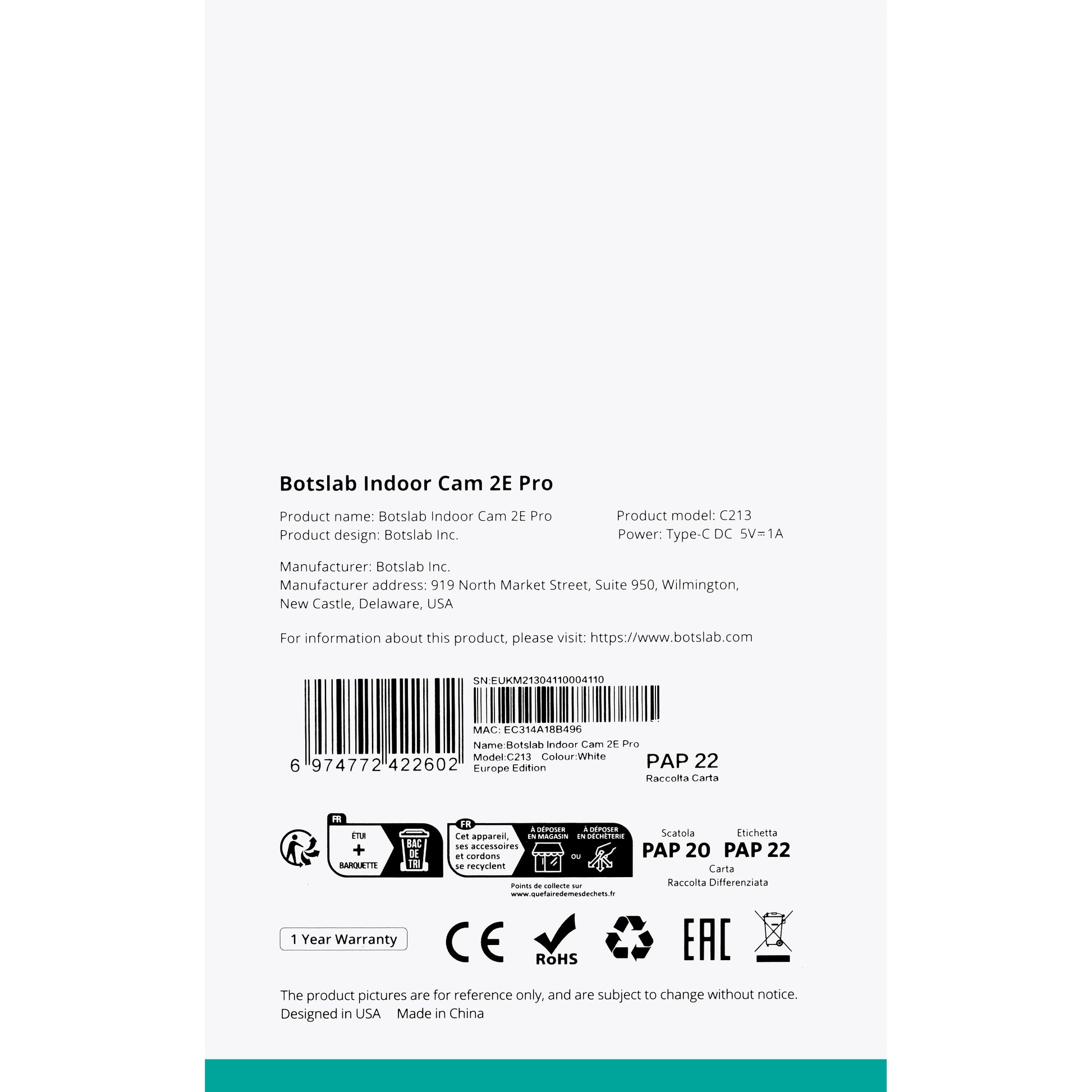 - Storage options: Cloud: Botslab Cloud
