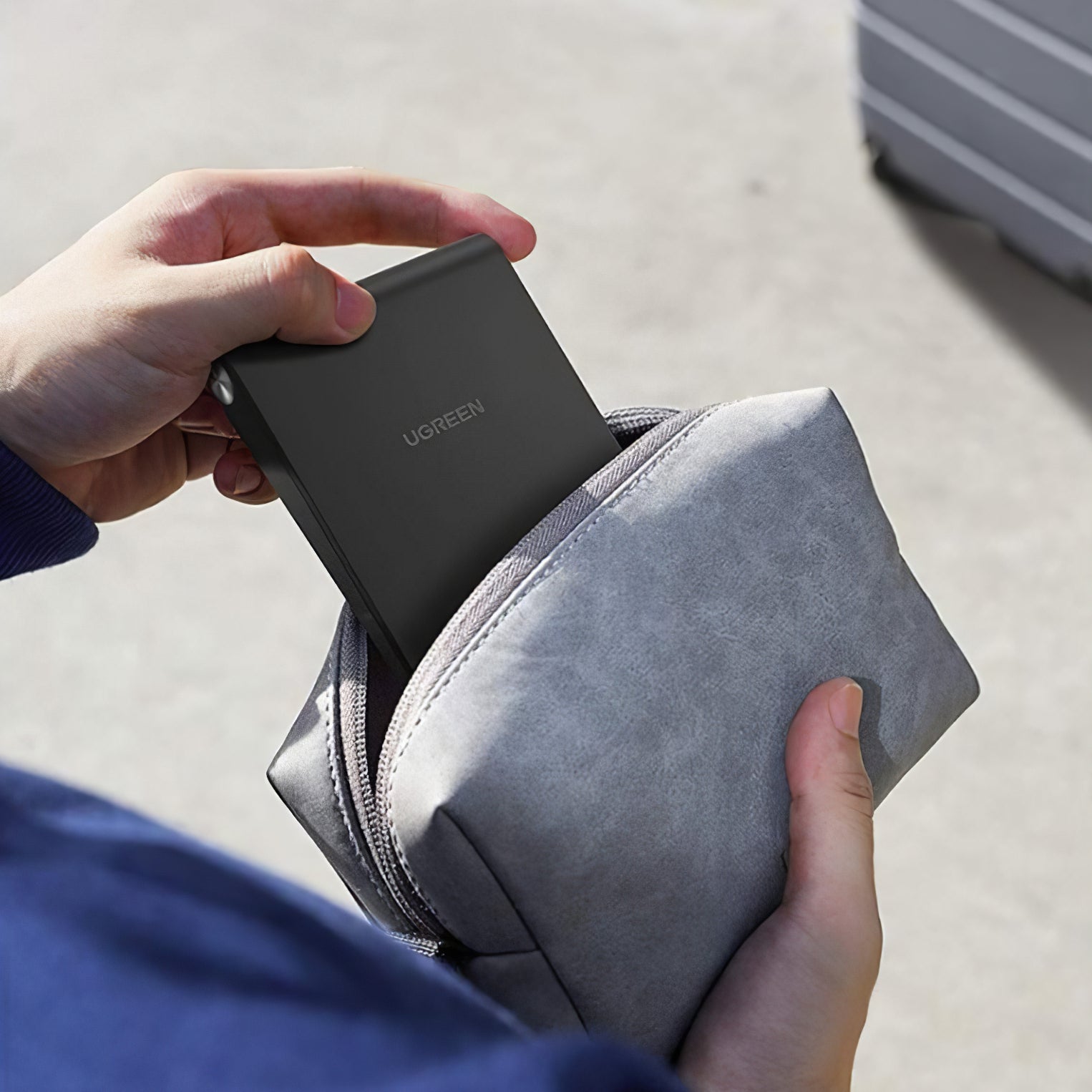 - Can be used during charging with a dedicated cable hole