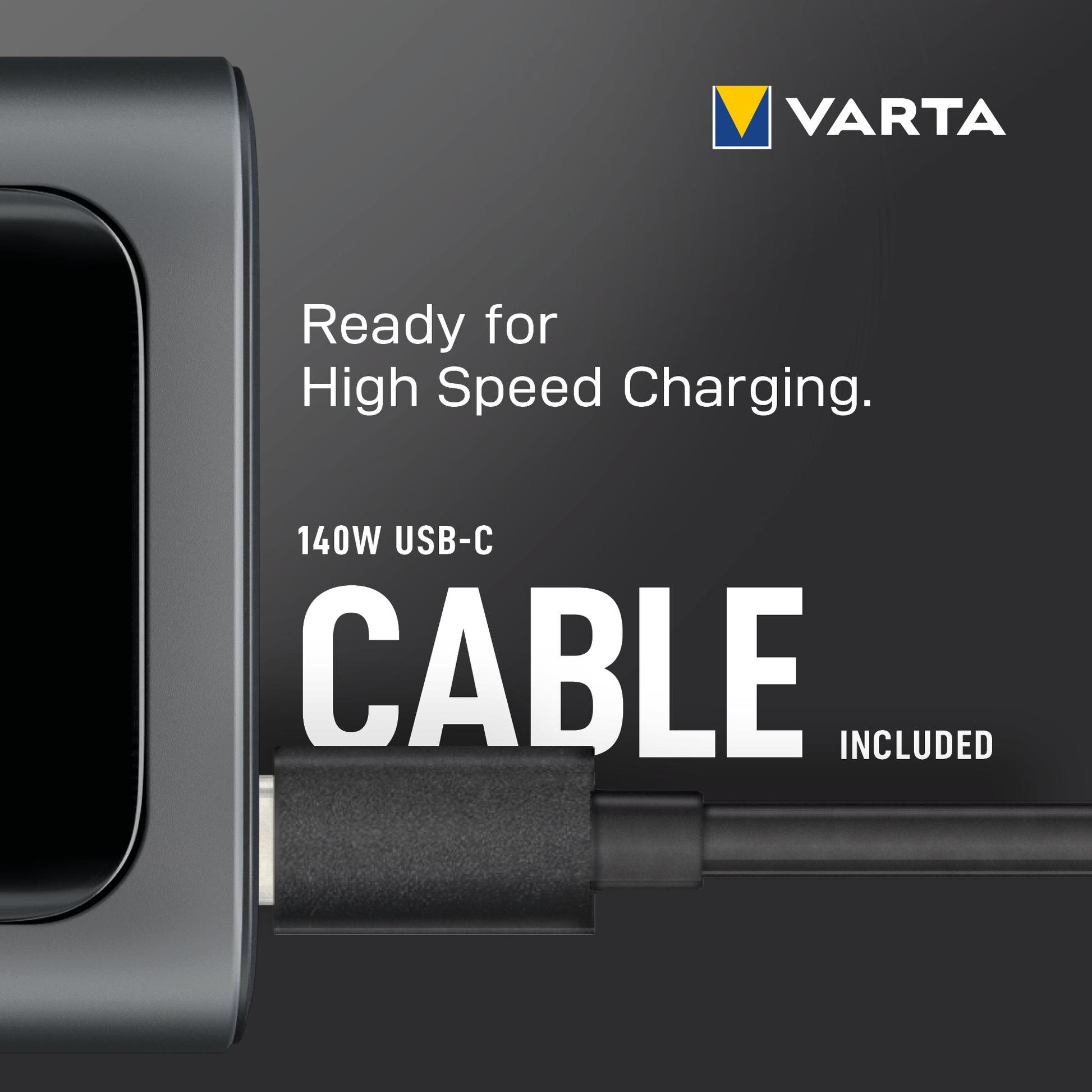 Varta High Speed External Battery, 27000mAh, 140W, QC + PD, 1 x USB-A - 2 x USB-C, Black