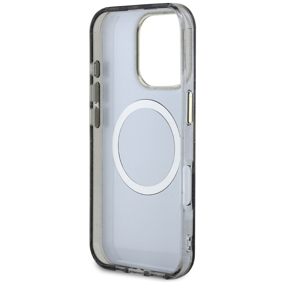 MagSafe Hülle für Apple iPhone 16 Pro Max, Guess, IML Metal Glitter Flowers Triangle, Schwarz