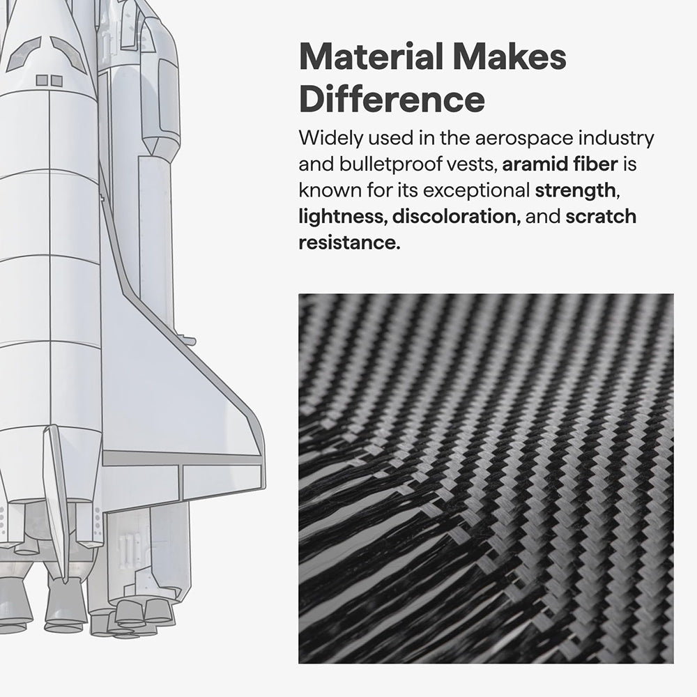 Der subtil erhöhte Rahmen in Kombination mit der für ihre überlegene Festigkeit bekannten Aramidfaser sind wertvolle Vorteile gegen Beschädigungen.