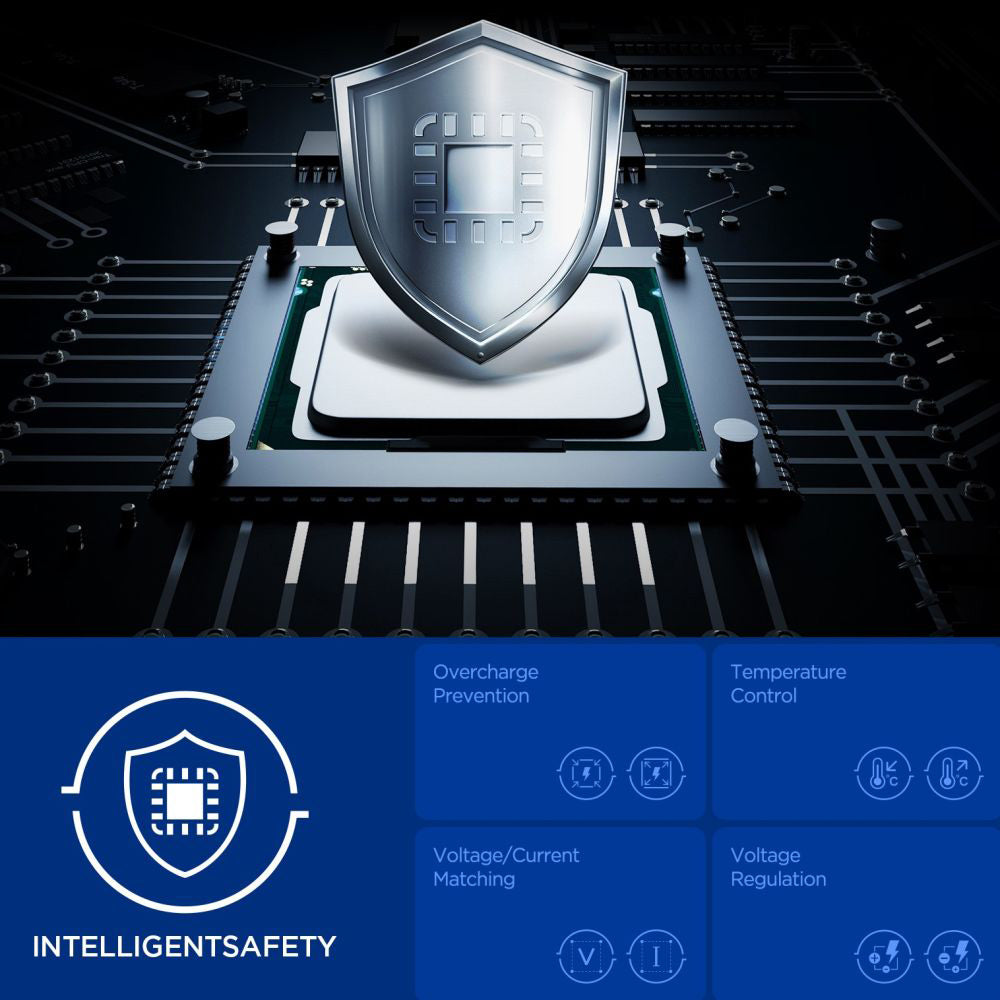 • Durch die "Quantum Boost"-Technologie erkennt dieses Dual-Ladegerät das angeschlossene Gerät und passt die Ladeparameter automatisch an.
